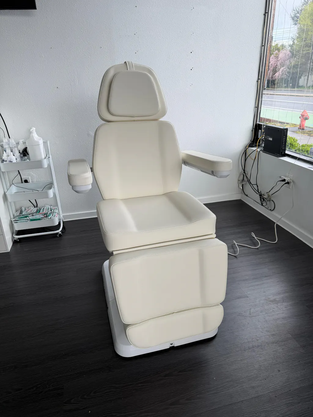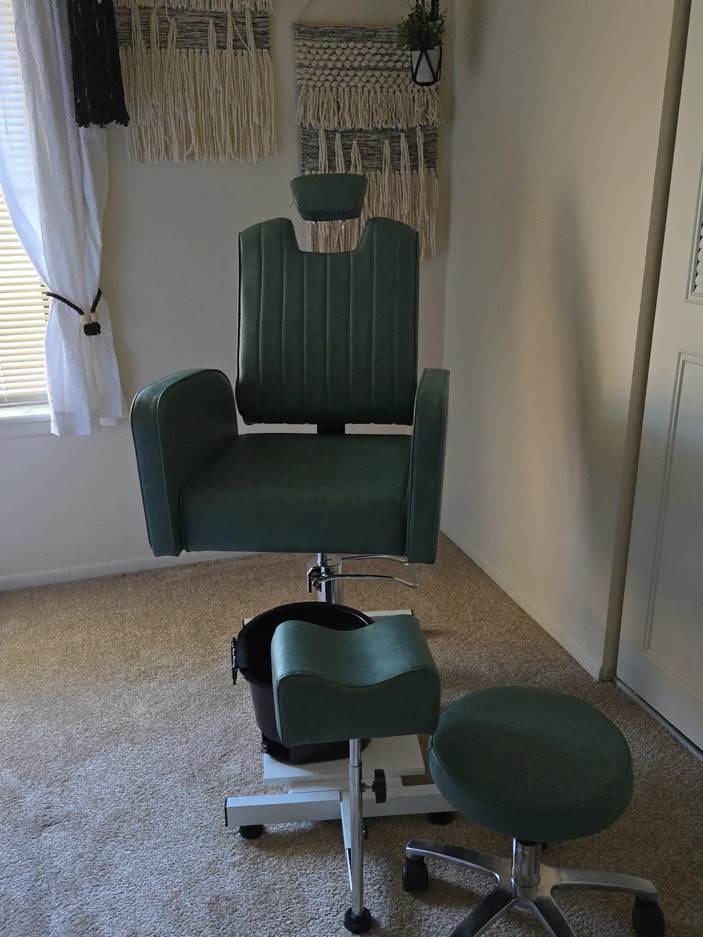 Such a comfortable chair for me and my client. I do dry pedicures and the chair goes pretty high up for me to sit on a stool confortable with no back pain.