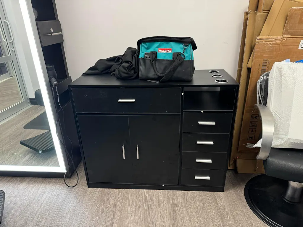 I bought this to use in my salon suite & i love the amount of storage! Pretty easy to assemble