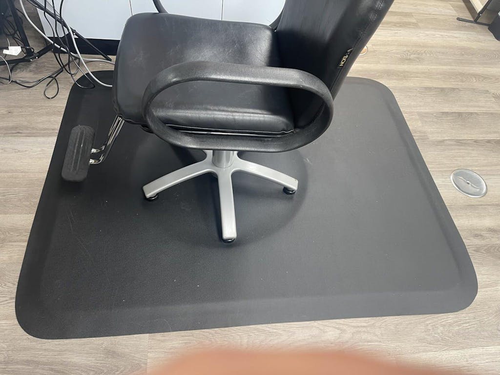 4.【Durable & Wear Resistant】- This salon chair mat is made to last, professional quality for barbershop and hair salon. Heavy-duty construction is highly resistant to tears, including wear from rolling carts and dropped tools. As well as helping to reduce leg strain, the barber mats also protects the salon floor and resists all common acids, oils, and hair color, keeping your station looking pristine.