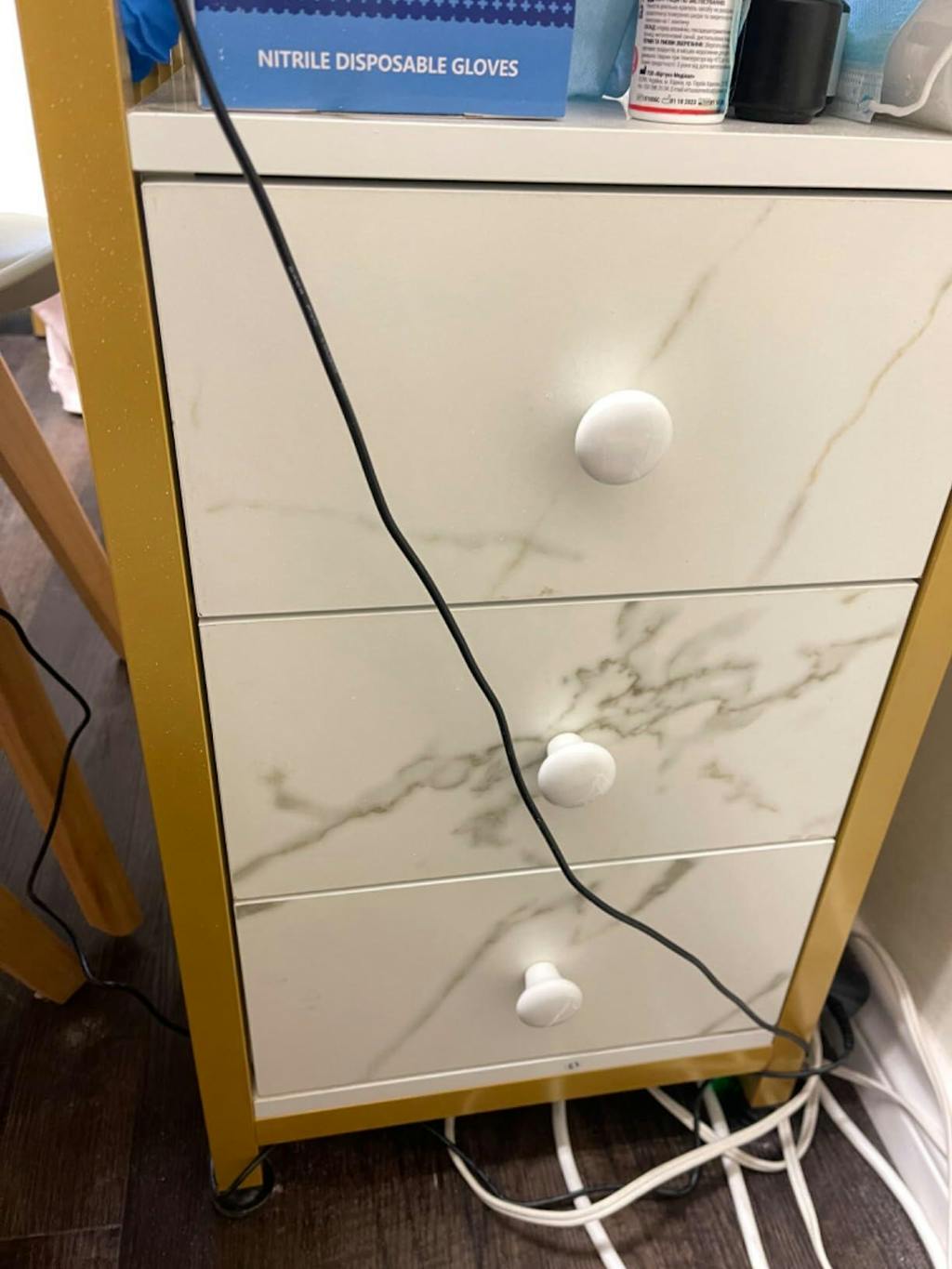 OmySalon MTD Marbling Texture Nail Manicure Table w/Wrist Rest & 2-Tier Desktop 3 Drawers