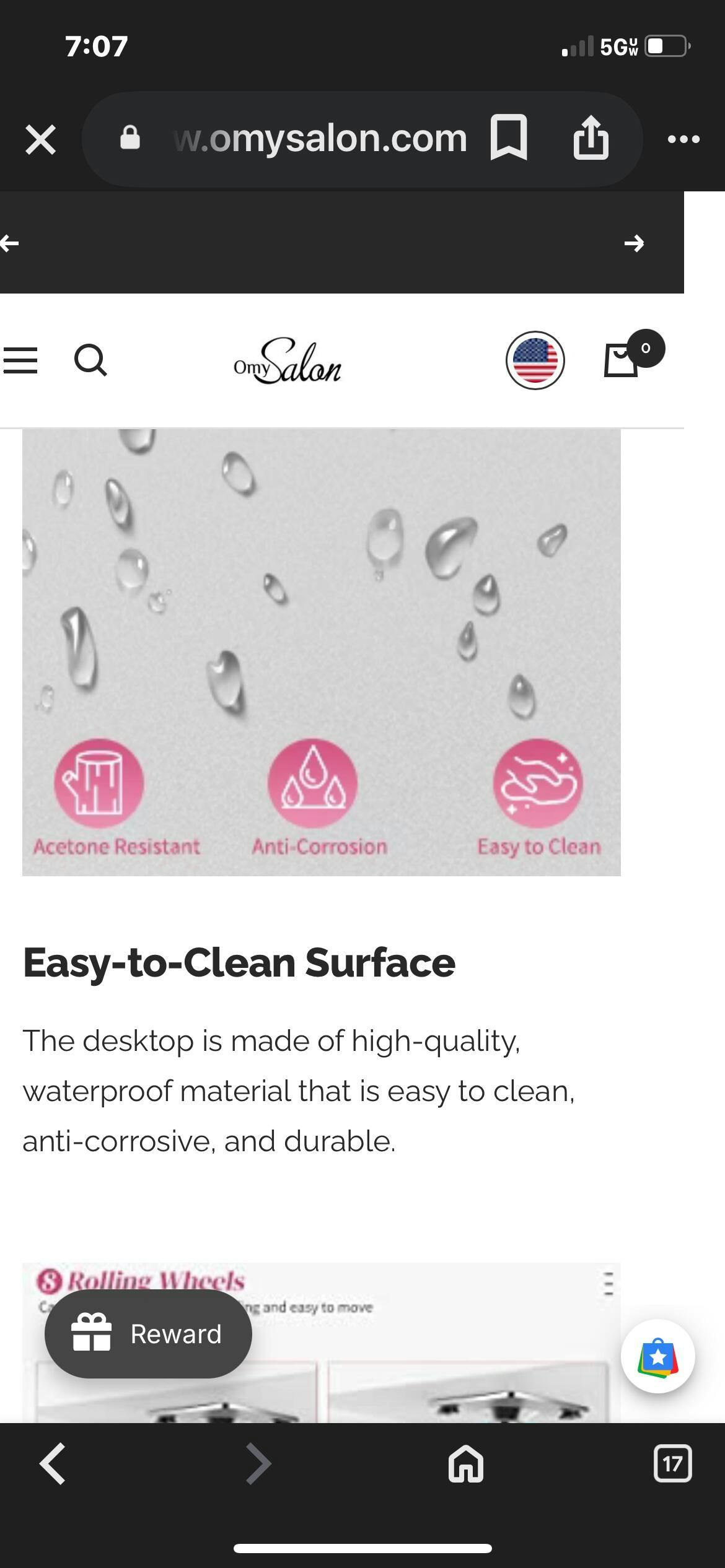 Omysalon MT-DC Nail Manicure Table w/Electric Dust Collector & Wrist Rest & 2 Open Spaces 1 Side Cabinet 4 Drawers