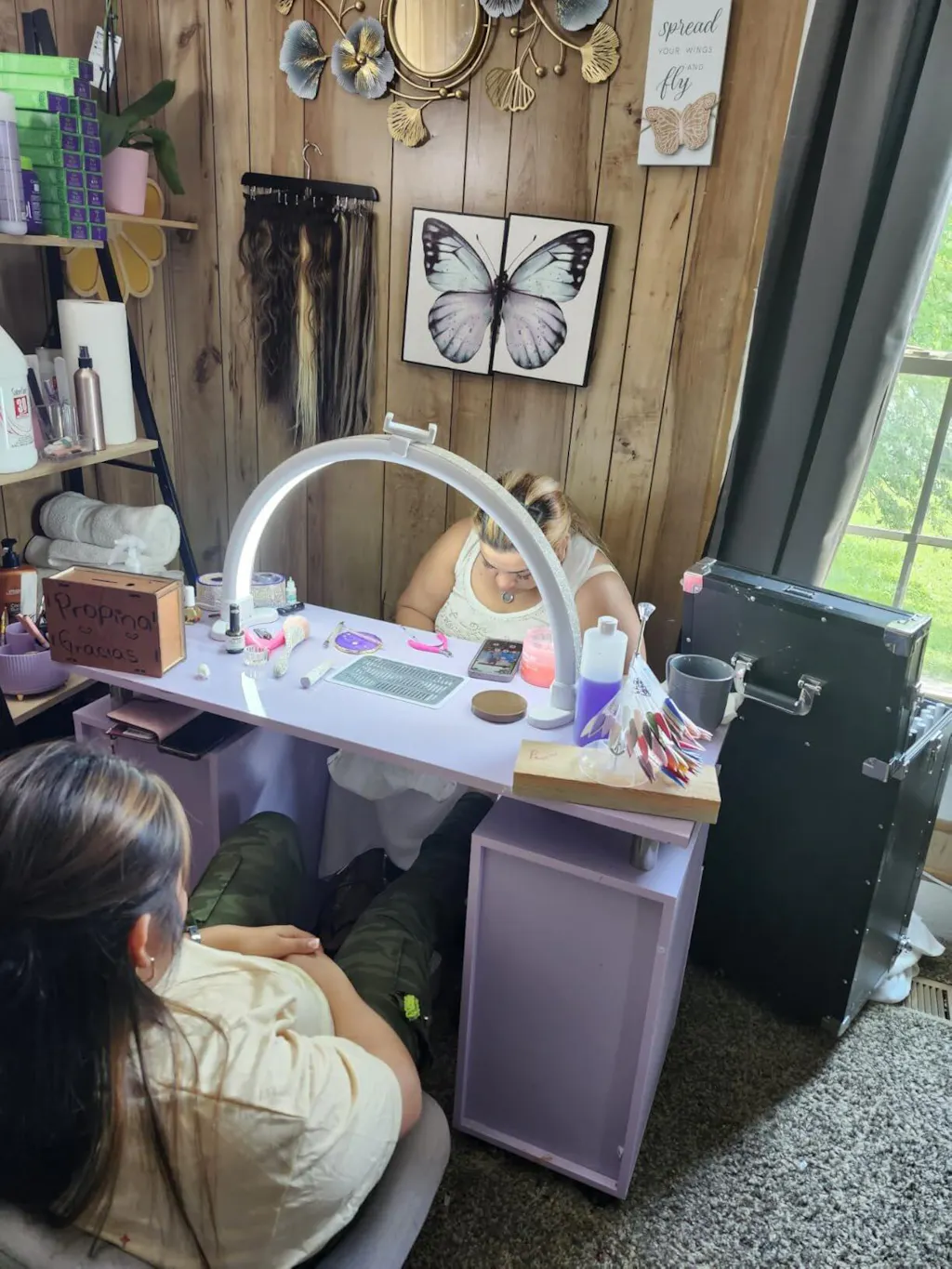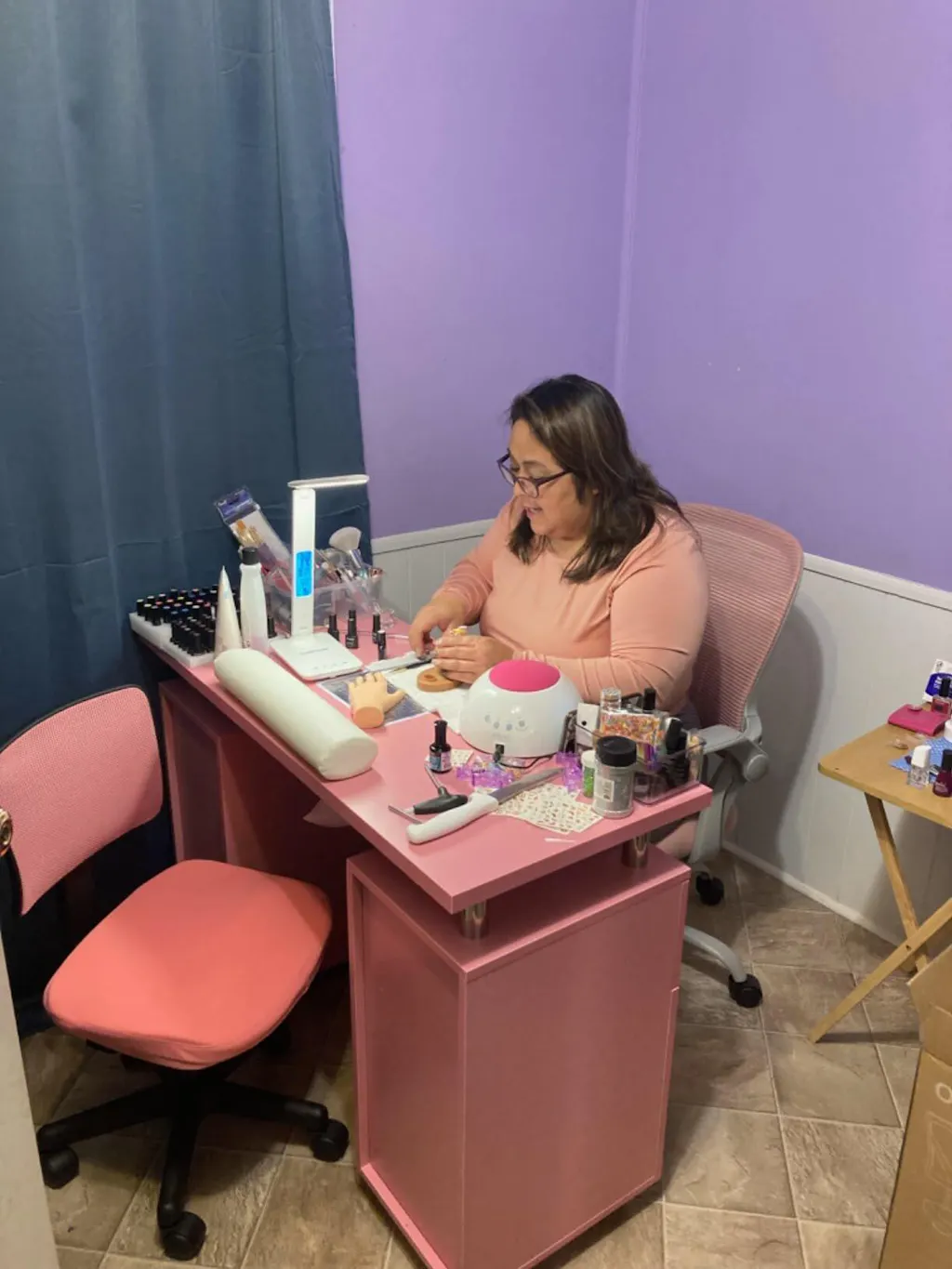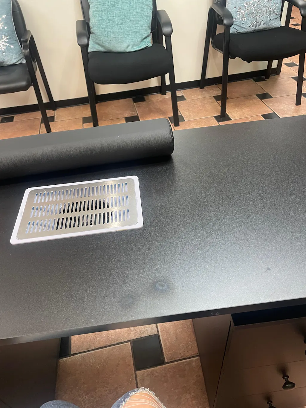 Omysalon MT-DC Nail Manicure Table w/Electric Dust Collector & Wrist Rest & 2 Open Spaces 1 Side Cabinet 4 Drawers