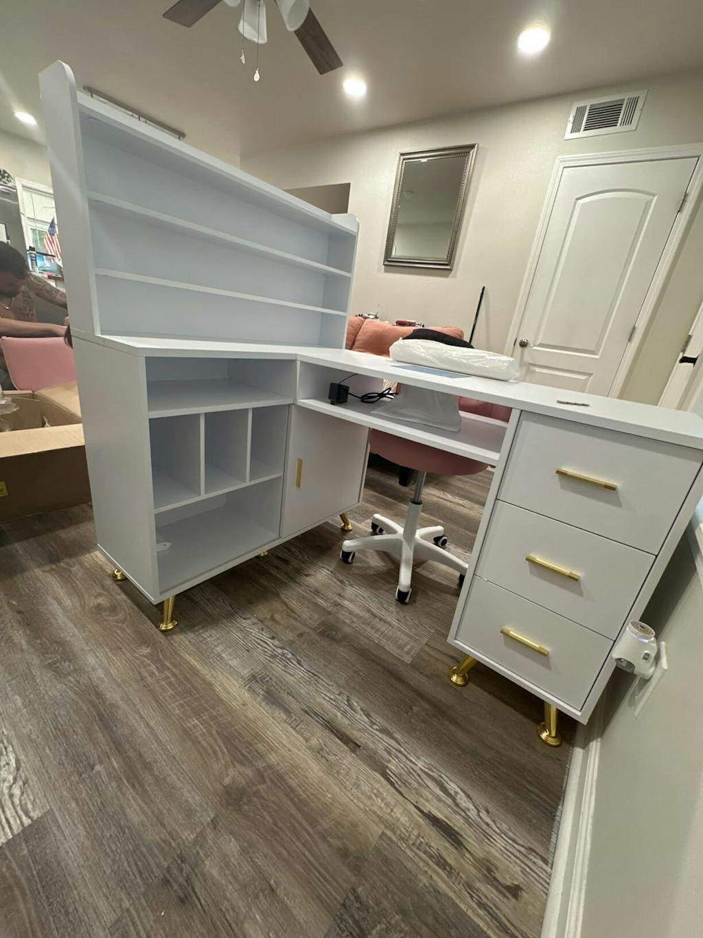 2.【L-Shaped Space-Saving Design】- Praised for maximizing workspace, this design makes it ideal for both small and large salons or home setups. The extended 18.9'' width provides extra working space.
