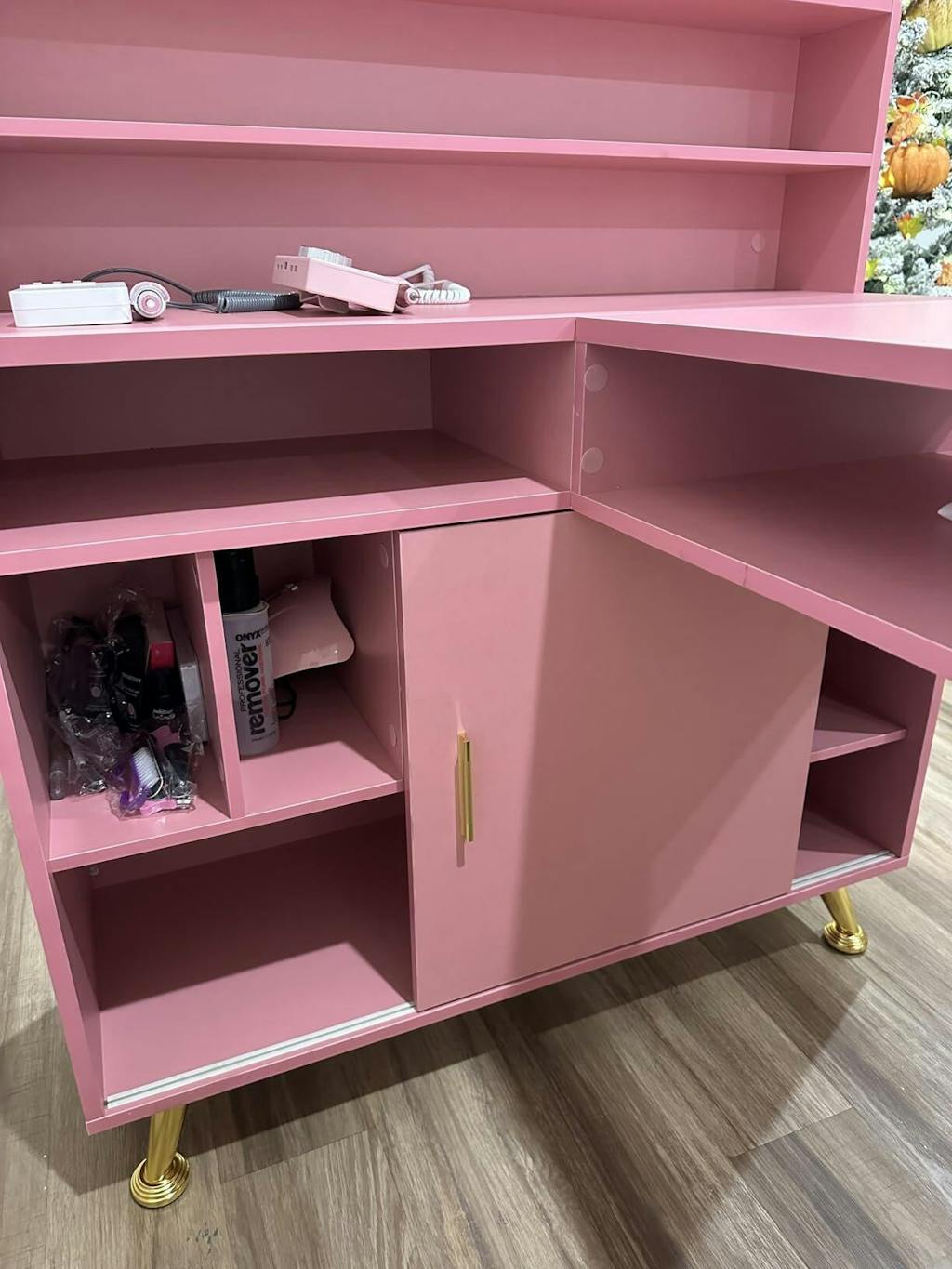 1.【Ample Storage with Display Rack】- The 36.6''L four-tier open shelves provide a capacity of 180+ bottles. The 5.1'' depth fits at least two rows of average bottles or powder containers. Multiple drawers, cabinets, and shelves offer generous storage space to keep all nail tools and products organized and within easy reach.