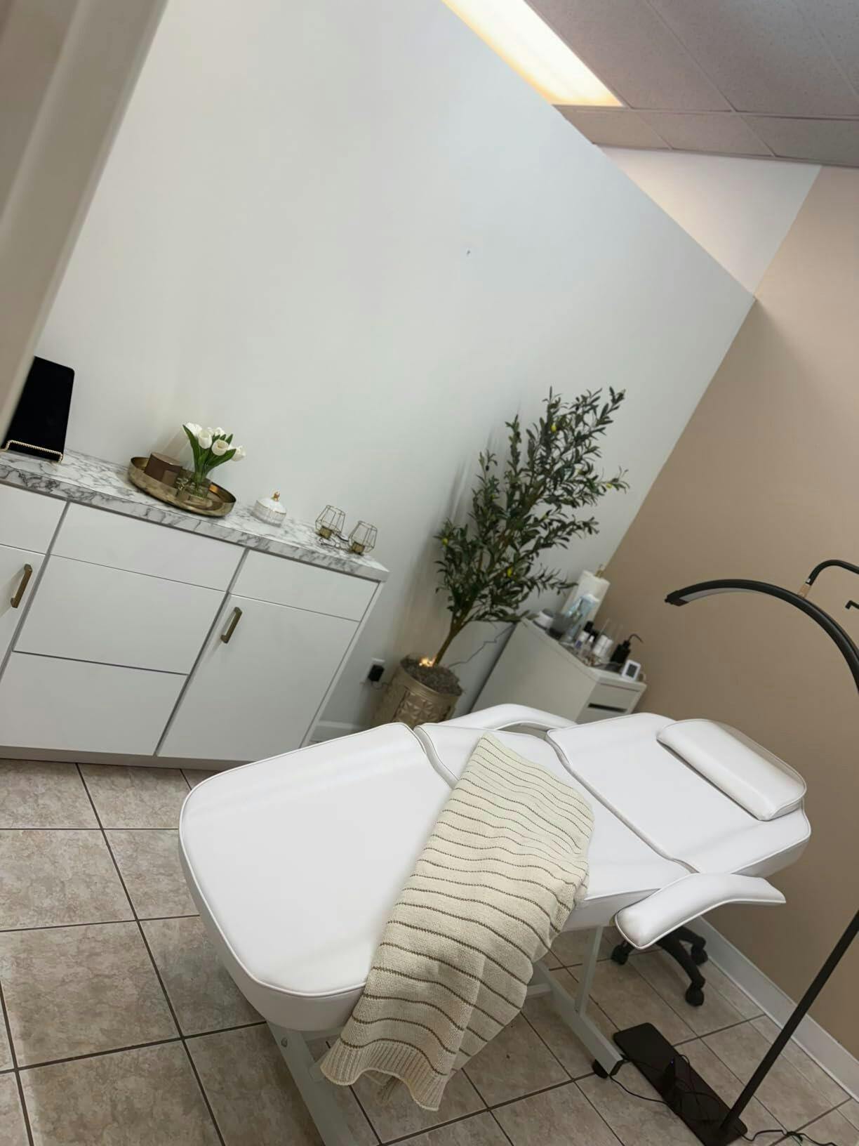 3.【Hydraulic Rotating Stool】- Equipped with a 360-degree swivel and height-adjustable stool. It features a cushioned, faux-leather seat that provides unrestricted comfort as you work on your clients.
