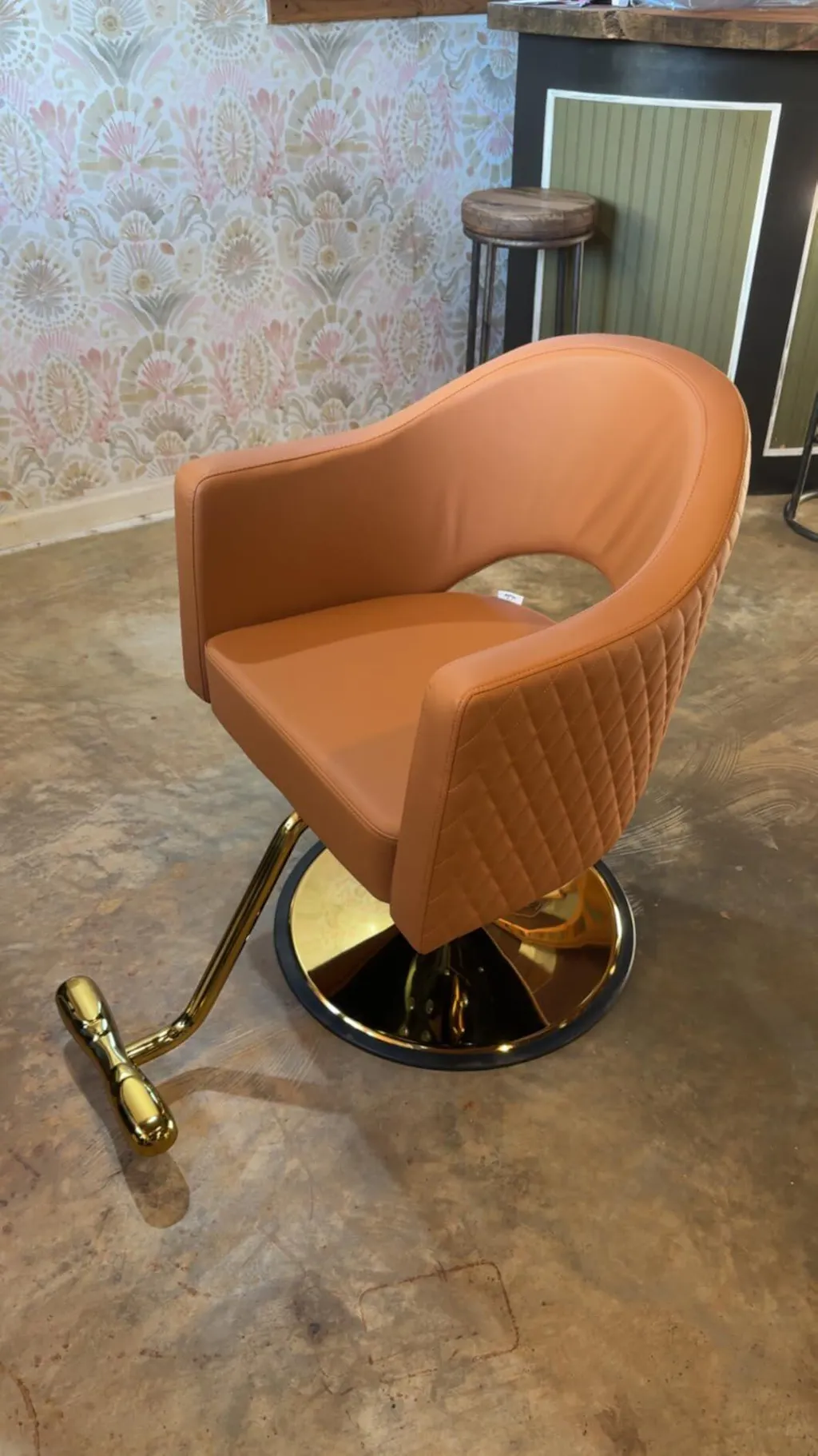 OmySalon SC3401 Heavy Duty 360° Swivel Styling Chair with Rhombus Stitch Pattern Back & Gold Footrest