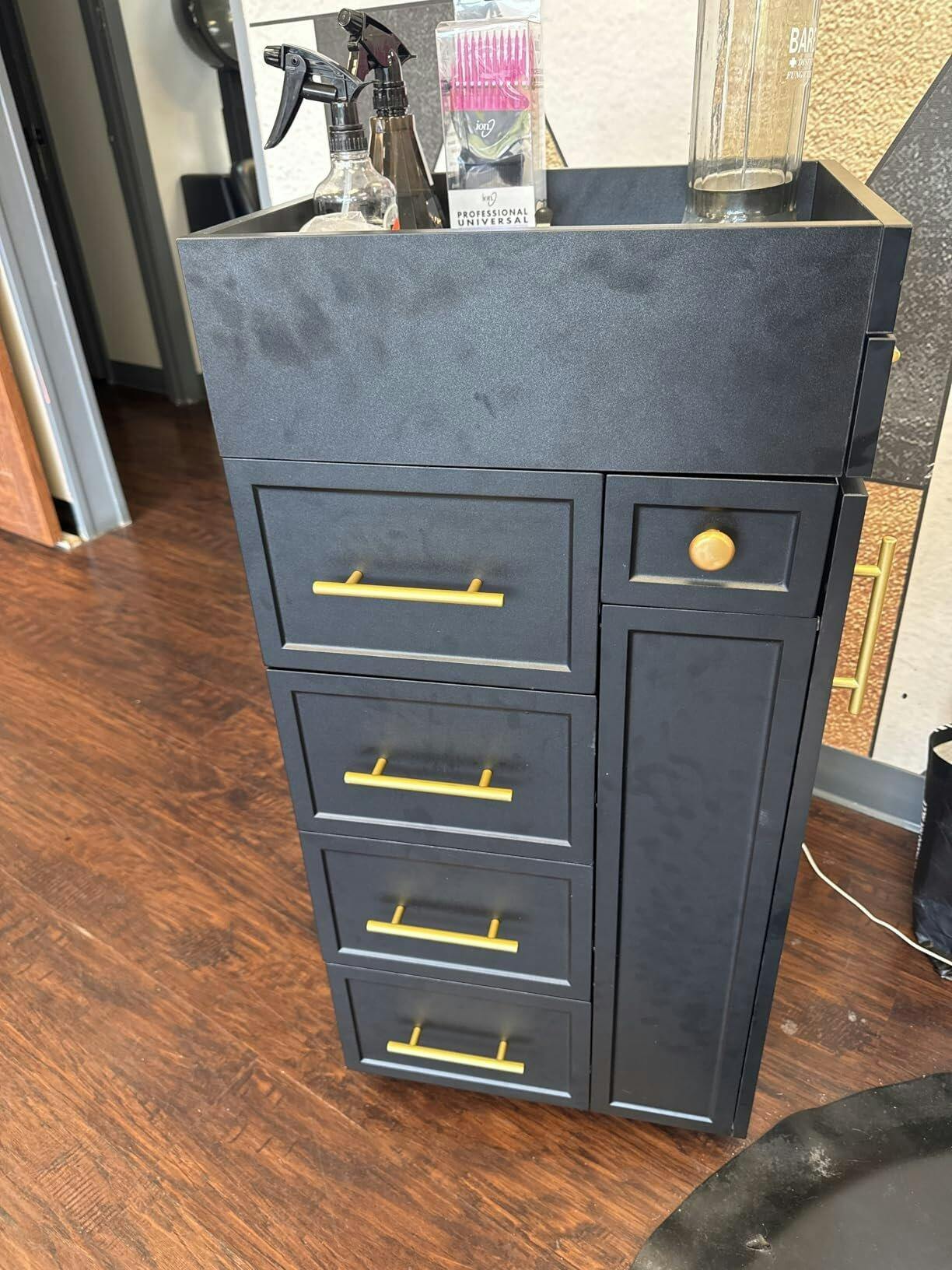 3.【Durable & Modern Build】- Crafted from high-density eco-friendly board, this salon storage cart withstands daily use in busy environments. Its classic, modern design makes it perfect for barbershops, salons, or home studios.